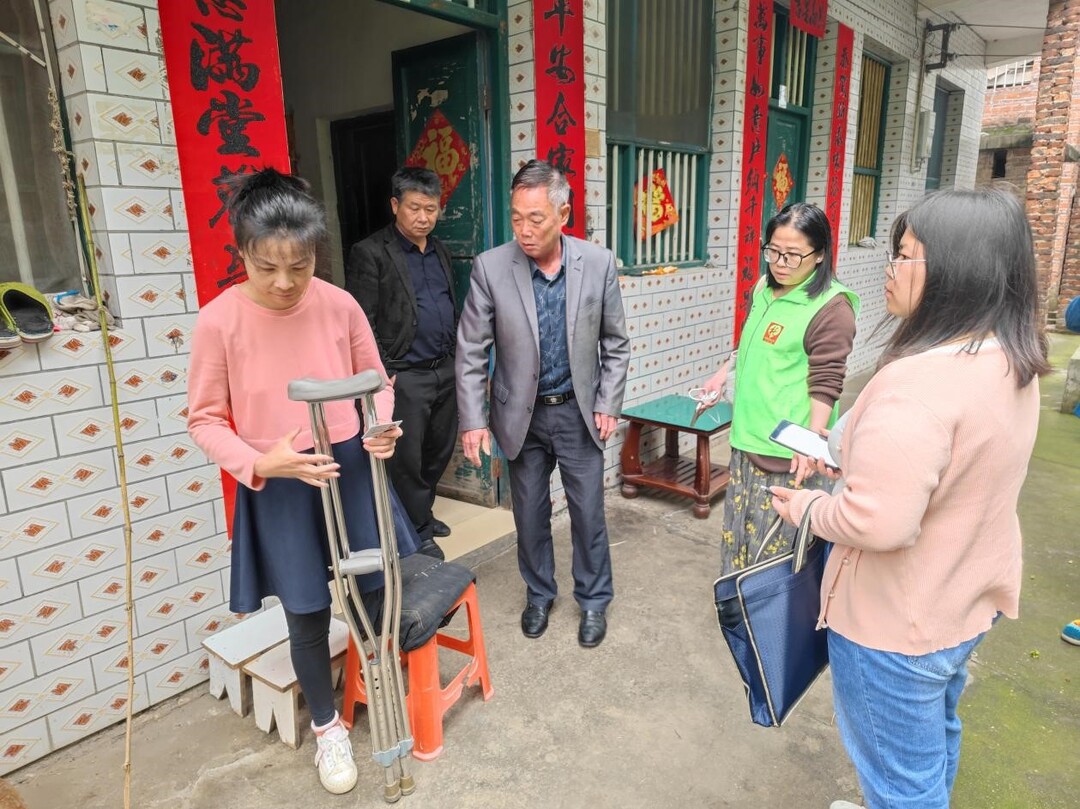 新桂阳4月28日讯(通讯员 何旭燕 李蓓)为进一步落实残疾人服务政策,减轻残疾人办证负担,4月25日上午,太和镇民政社会工作服务站联合县残联,深入辖区34户重度困难残疾人家庭,开展上门评残入户评估工作,为残疾群众提供“一站式”评残服务。