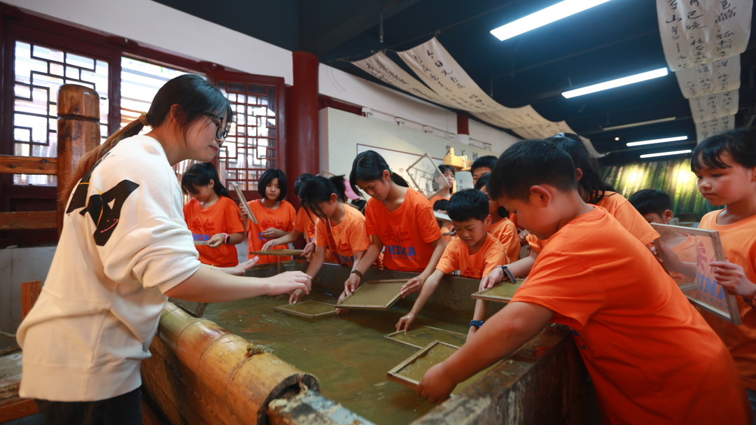 安仁县研学团学员窦浩权说:“今天非常开心,在古城内体验了造纸、做陶等非物质文化遗产,让我在劳作中体验了传统文化的魅力以及古人的智慧。”