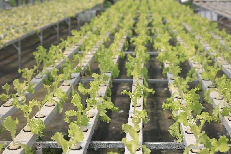 蔬菜种植区满眼都是翠绿的生菜、西葫芦、辣椒,在它们的底部,自动化水肥机正供给着生长所需的水分及营养液。