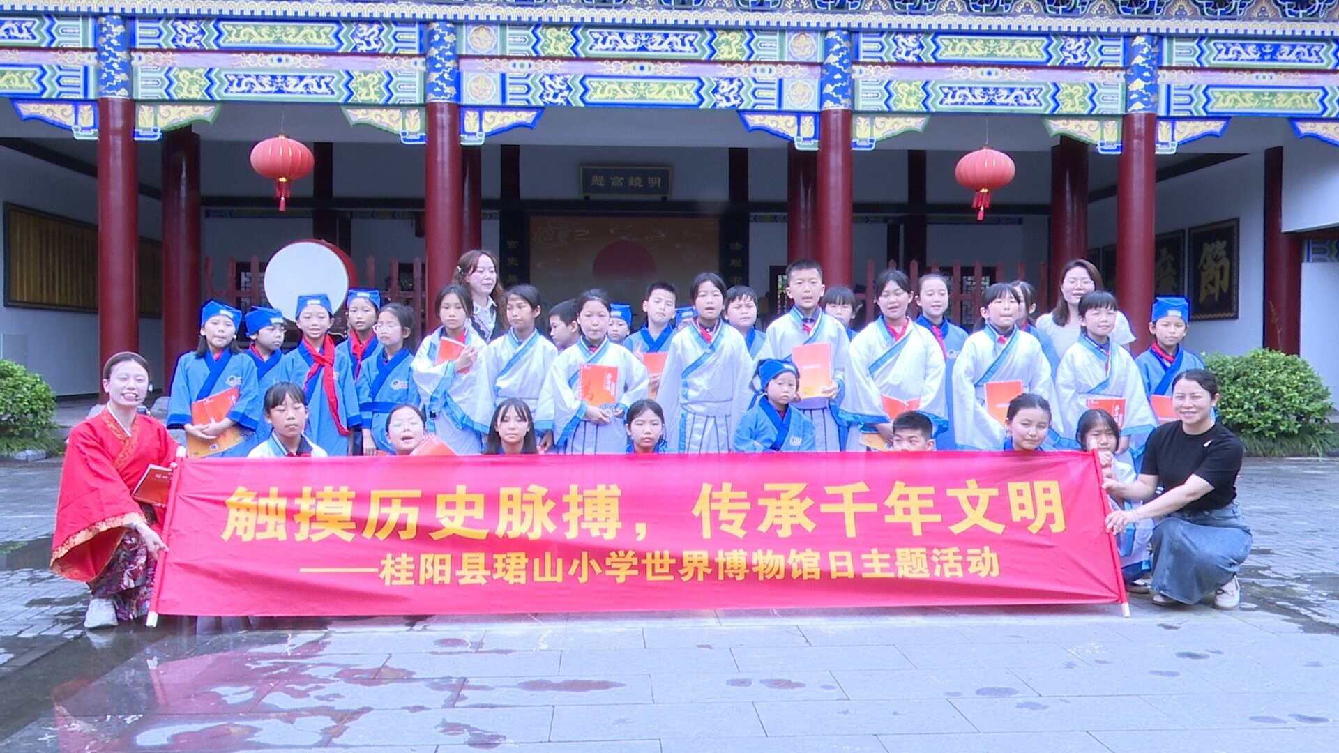 活动中,珺山小学学生在讲解员的带领下参观郡县历史文化展馆。讲解员生动讲述着一个个桂阳故事,让学生们深入了解家乡深厚的历史文化底蕴。
