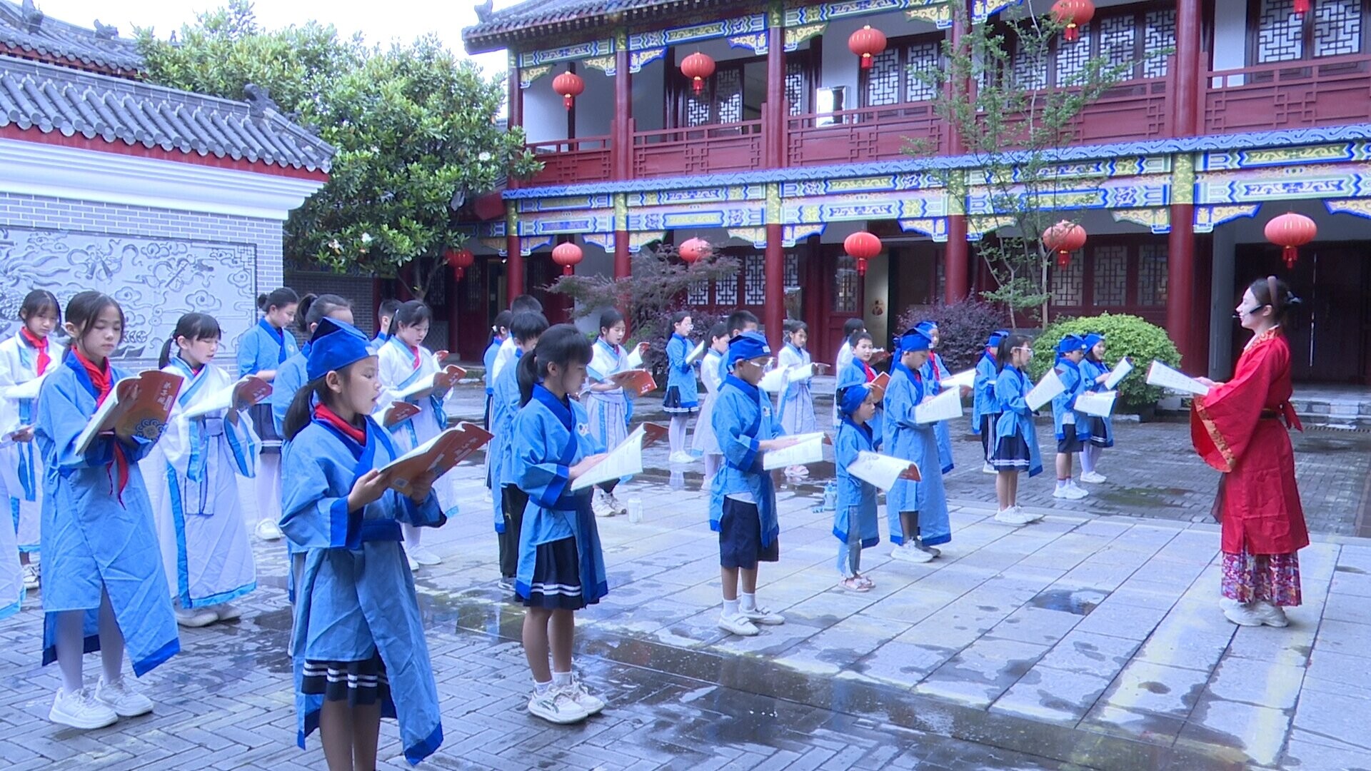 国学经典诵读环节,学生们身着国学服,齐声诵读国学经典《弟子规》。同时,还融入家风故事分享,通过一个个感人至深的家风故事,传承优良家风,助力建设幸福家庭。