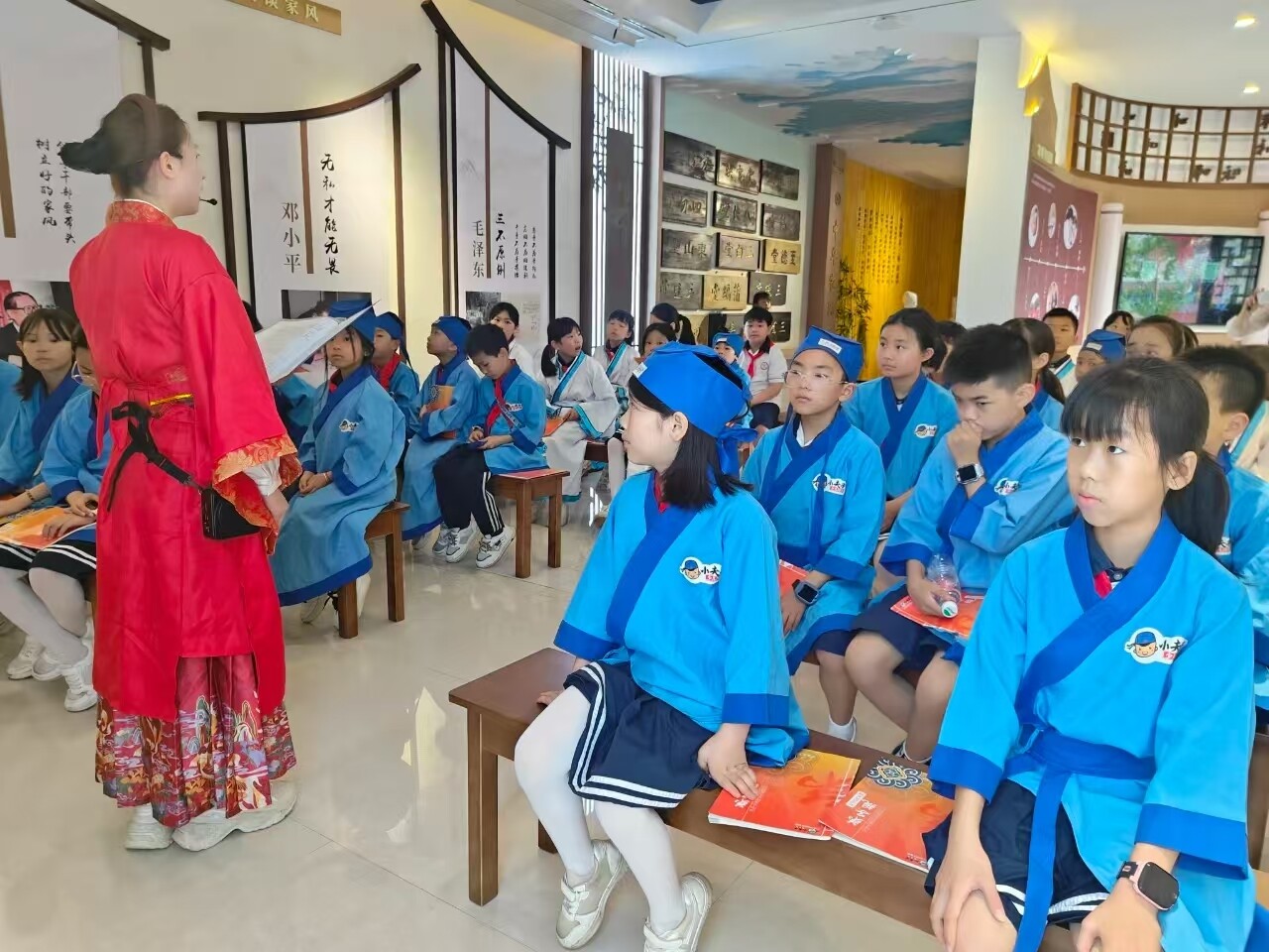 活动中,珺山小学40名学生在巾帼志愿者讲解员的带领下,有序参观了桂阳郡县历史文化展馆和桂阳县廉洁法治文化展馆。孩子们满怀好奇与敬畏,紧紧跟随着讲解员的步伐。每到一处,他们都认真观看馆内陈列的文物、图片和资料,聆听背后的历史故事与文化传承。在家风家训馆内,古朴的文字、生动的故事、珍贵的实物,让孩子们沉浸式感受到优良家风跨越时空的独特魅力,在他们幼小的心灵中播下了美德的种子。