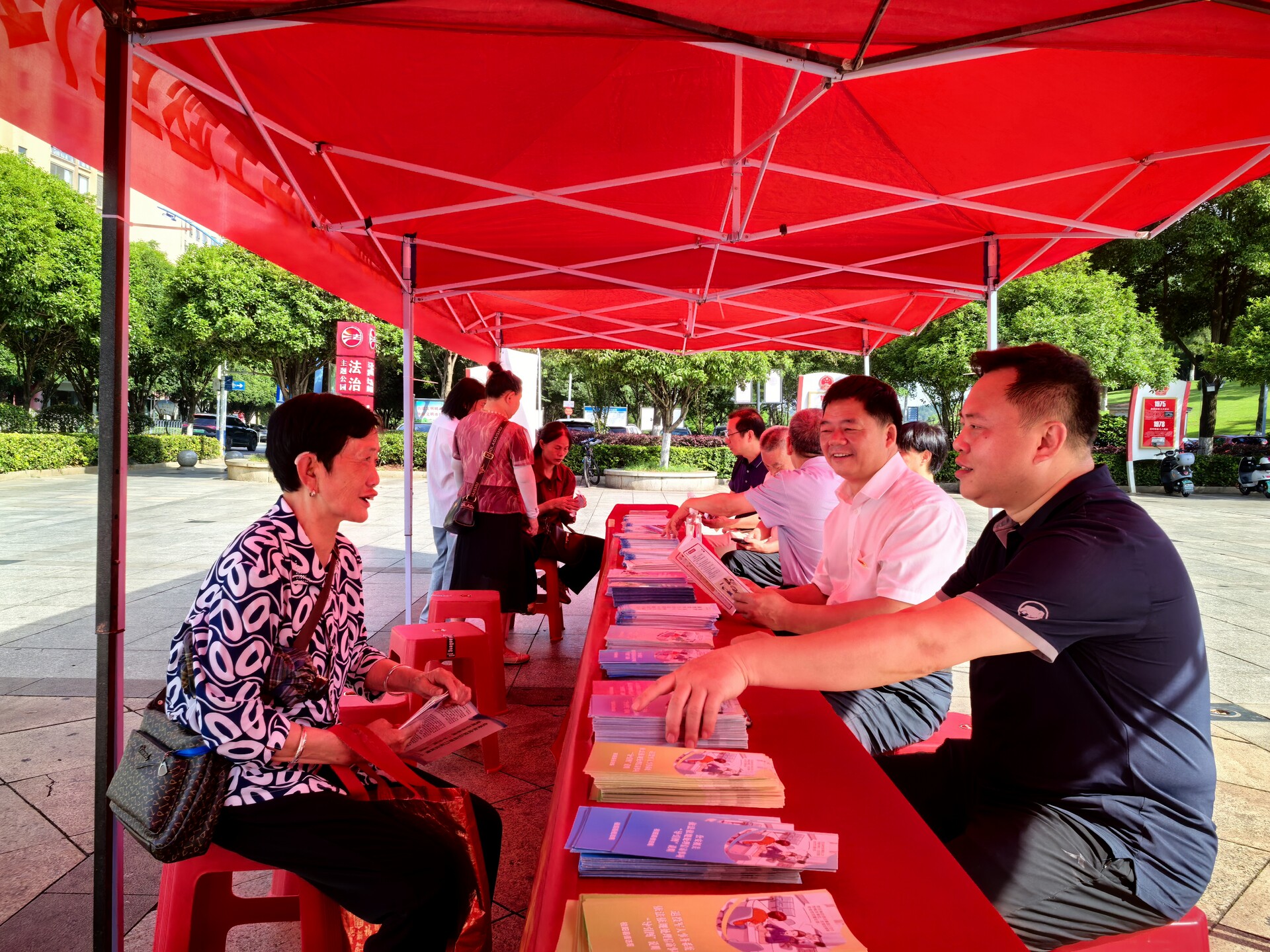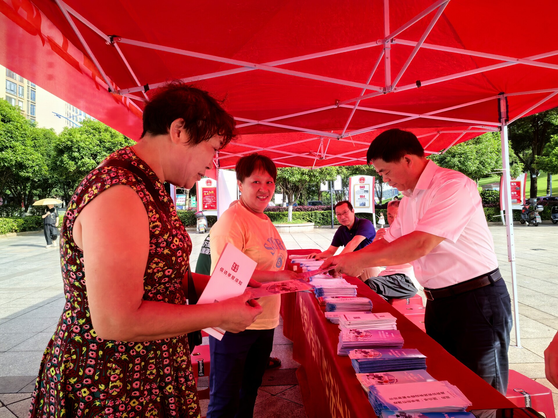 工作人员向过往群众发放《信访工作条例》《规范信访行为告知书》等宣传资料。针对群众关心的信访程序、信访受理等问题,工作人员现场解读了信访工作法治化的主要内容、重大意义等,普及信访知识,引导群众依法、有序、文明信访。