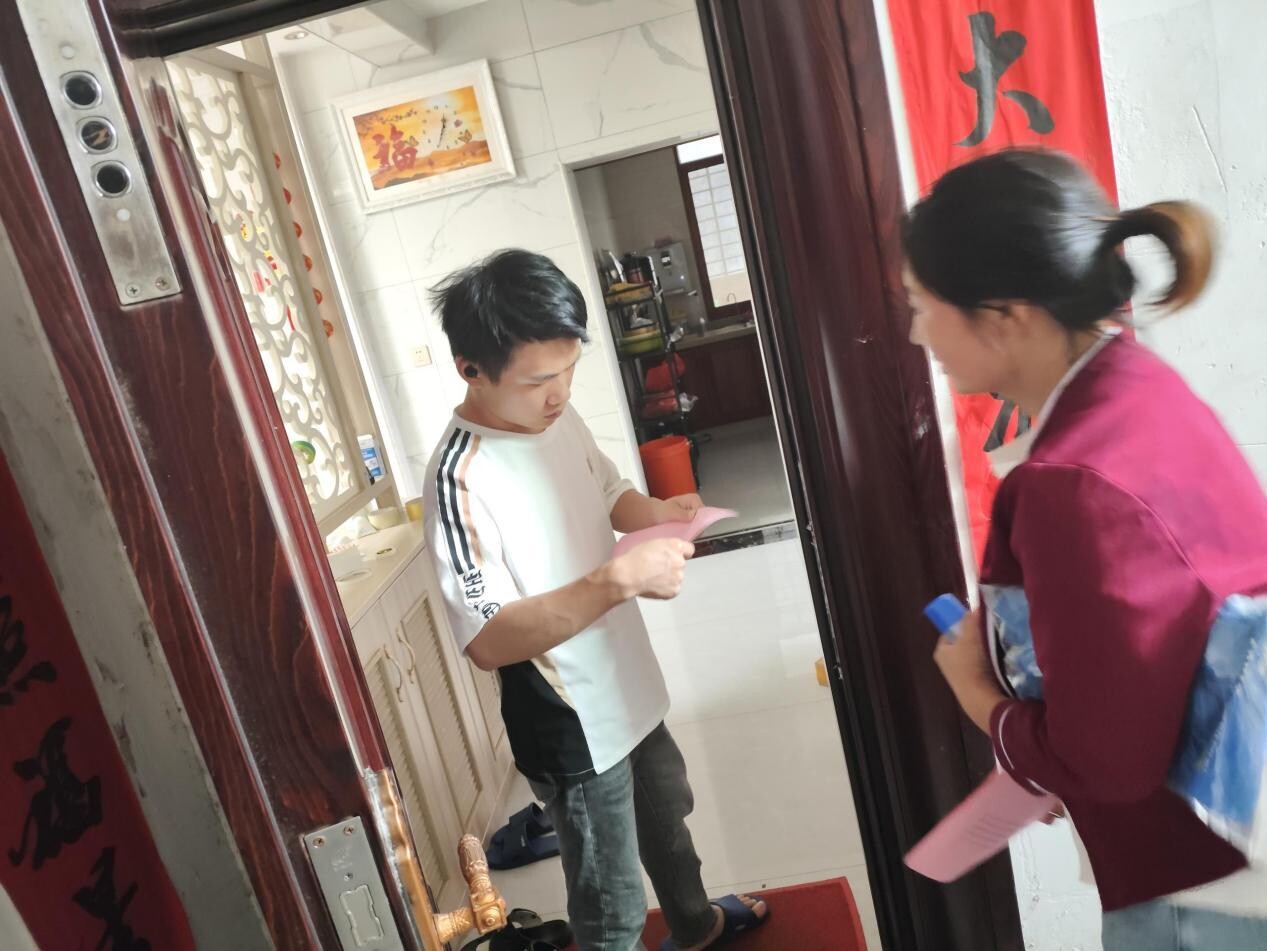 (图为5月27日晚,拱极社区干部到金坡岭地质灾害点进行入户劝离)