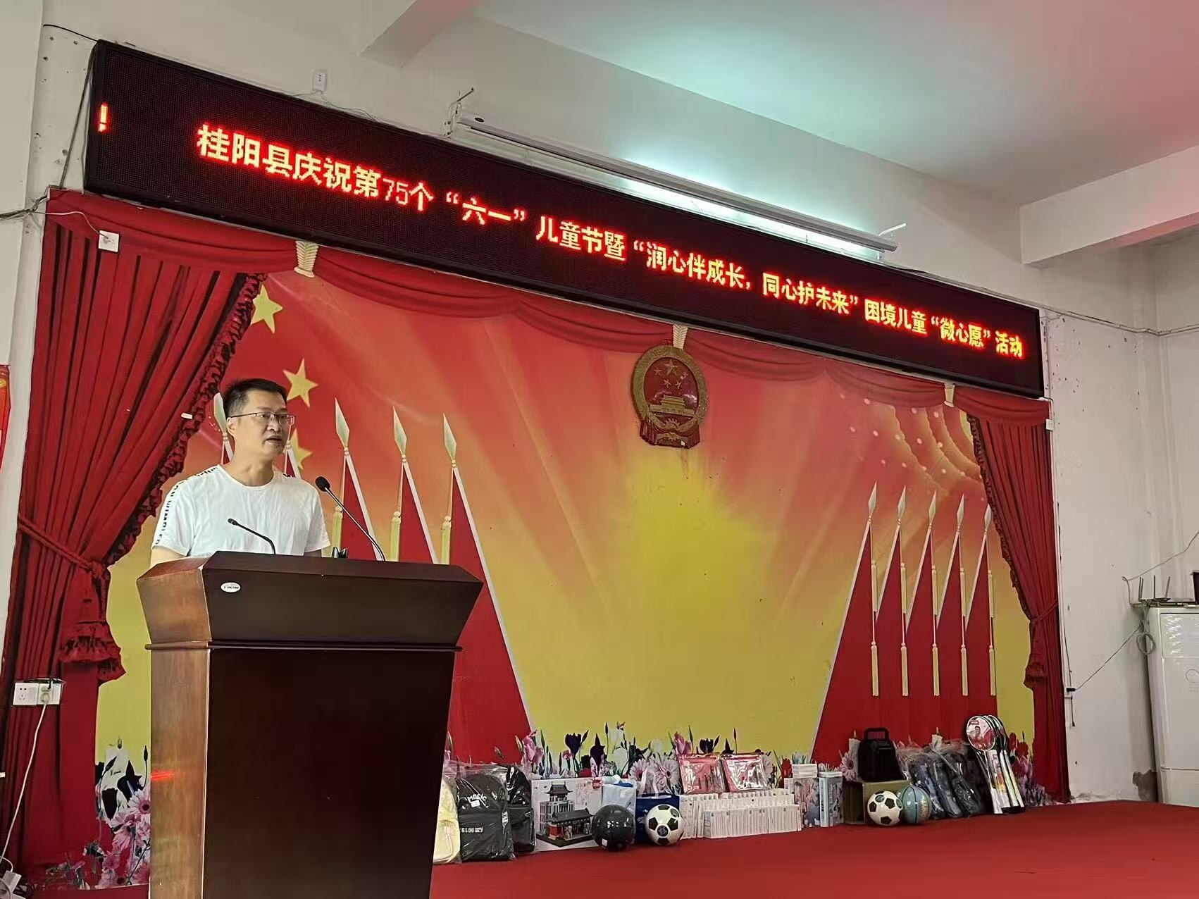 演出结束之后,县未保中心主任为30名困境儿童送上了书包、文具、体育用品等“微心愿”礼物,他鼓励孩子们要勇于克服暂时的困难、乐观地面对生活、勤奋学习,以优异的成绩回报社会各界的关心和关爱。