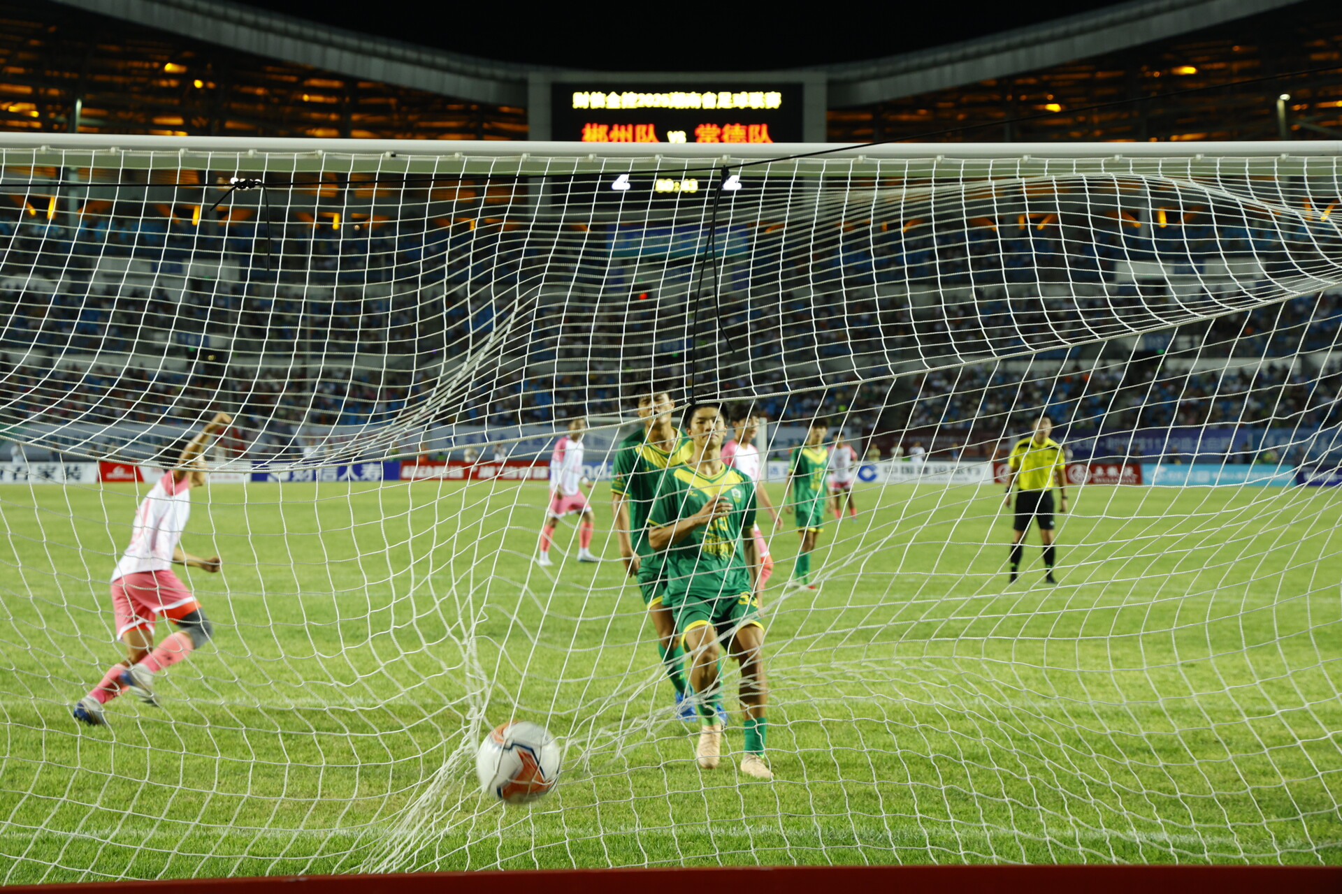 当晚7时38分,郴州赛区主场揭幕战正式拉开帷幕,现场的22000余名观众为两队呐喊助威,气氛热烈。出生于2007年的桂阳籍球员肖俊杰,在比赛中担任右后卫位置,他和队友默契配合,在攻防体系中熟练转换,多次拦截常德队的强势进攻。上半场尾声,第43分钟,郴州队抽射破门,3分钟内连进两球,将比分定格至2∶2。下半场比赛,廖鑫身着19号球衣替换上场,在队伍中担任前锋,协力队友带球突破。最终,经过90分钟鏖战,郴州队以3∶4惜败常德队。