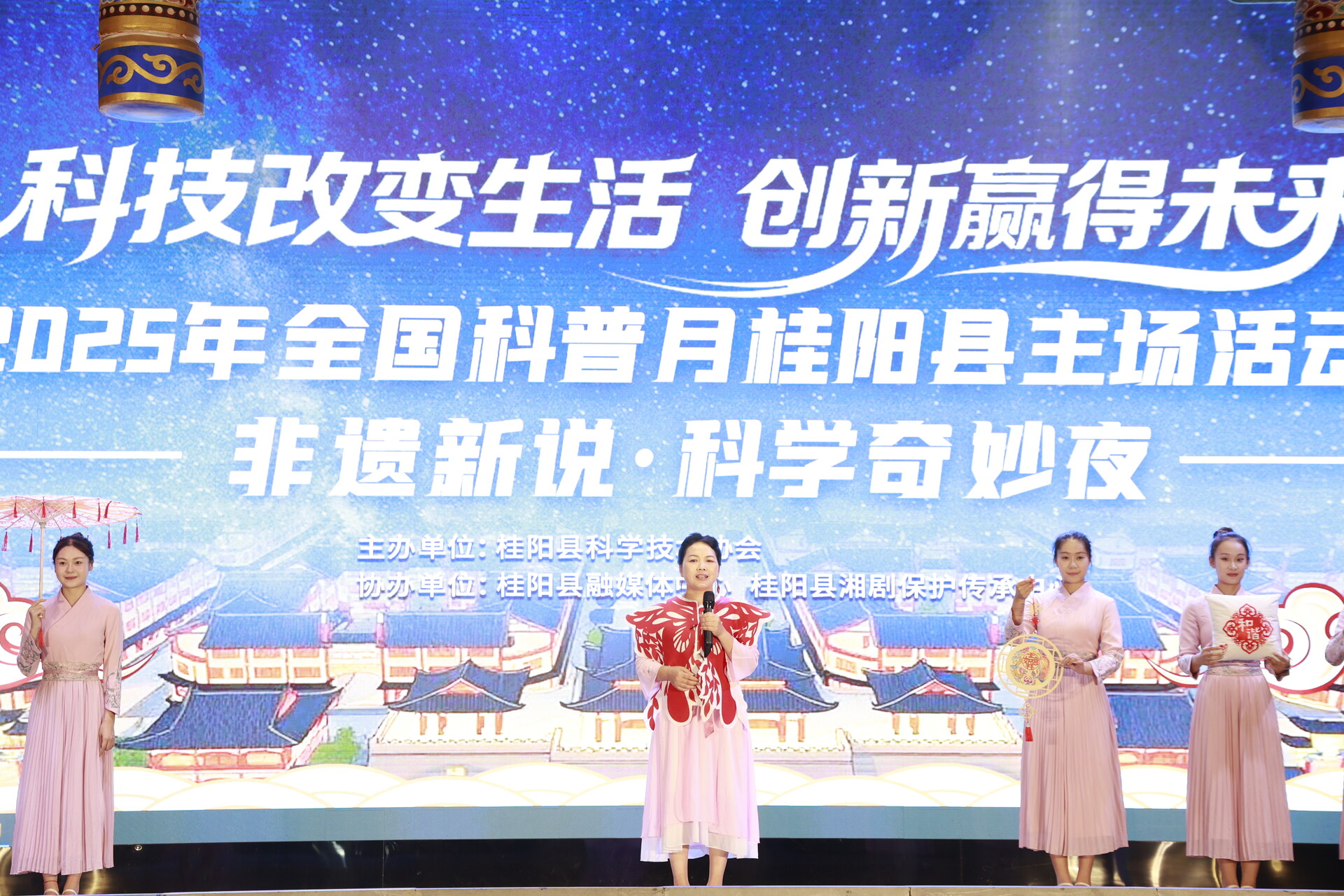 新桂阳9月22日讯(记者 刘娣 邓明俊 李子璇 欧阳宇轩)2025年9月是“全国科普月”,9月19日晚,一场“非遗新说·科学奇妙夜”主题晚会在我县上演。古法造纸、湘南木雕、精美剪纸……非遗传承大师陆续登台演绎,用科技解码古老匠心,共同点燃科学的火花。