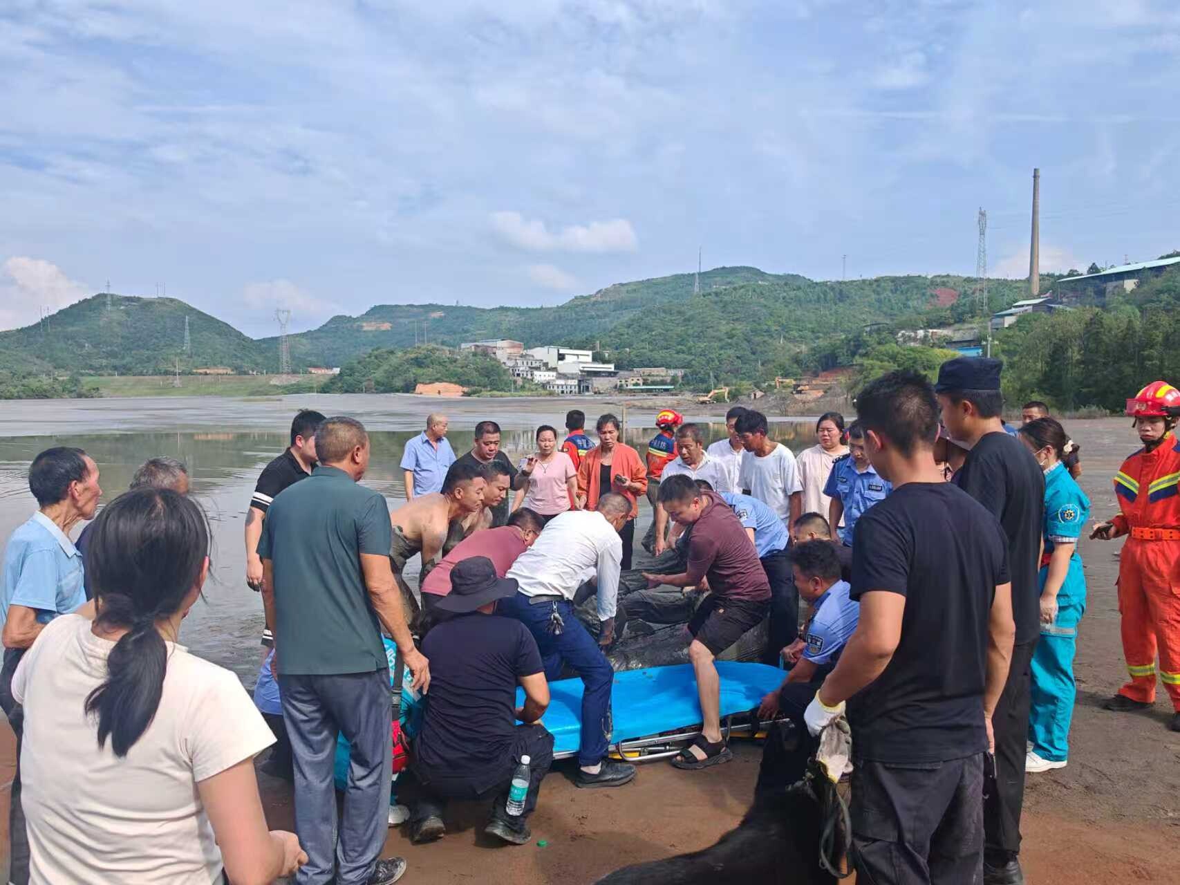 9月30日下午3点,在搜寻工作持续了20个小时后,警犬“尖刀”突然冲向尾砂库边缘,并发出吠叫:只见老人正被困在尾砂库中心区域的浅水中,体力明显不支。消防救援人员立即涉水靠近,其他队员在岸边协同配合,迅速开辟出一条生命通道。