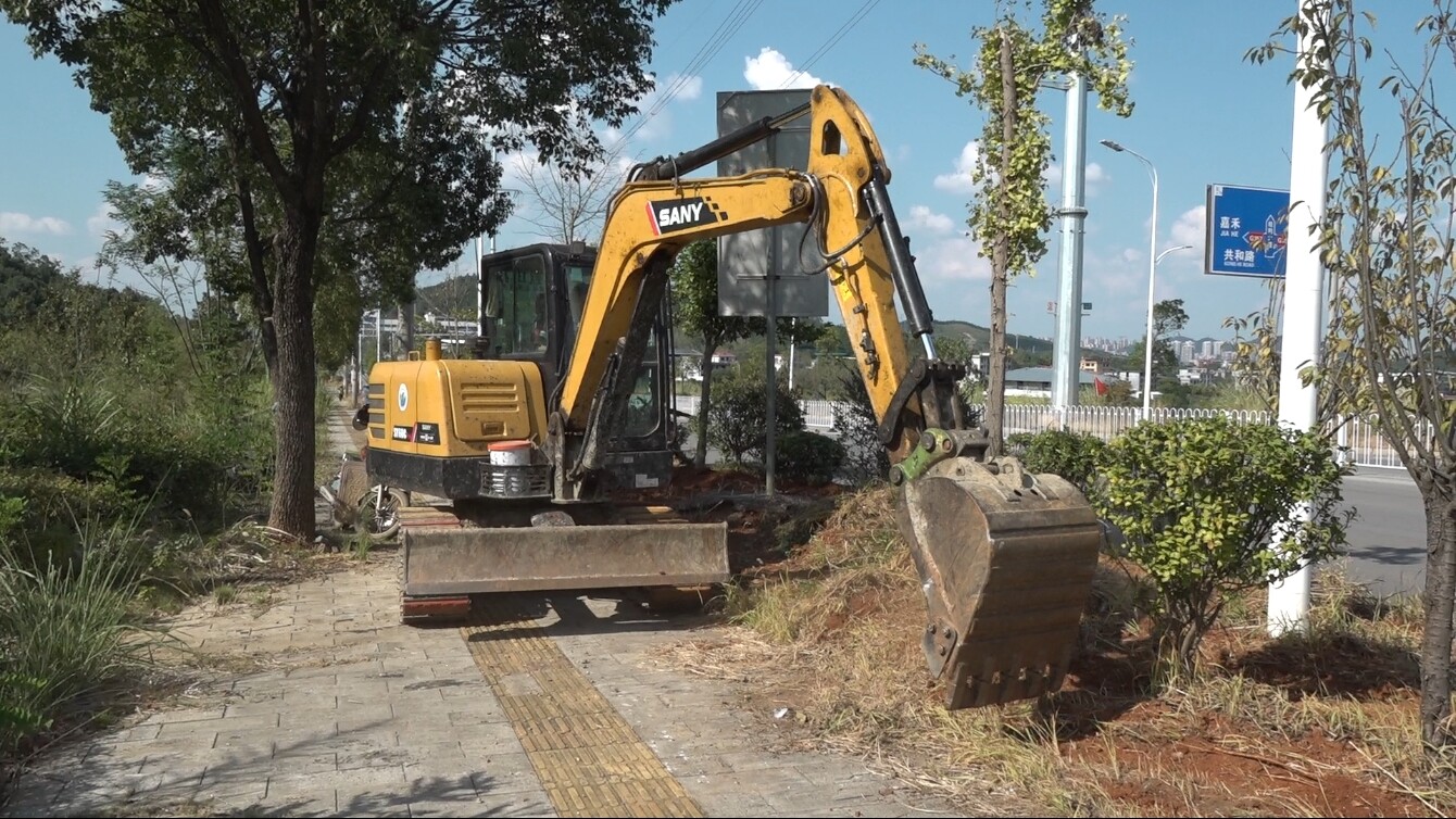 在施工路段,施工队伍严格按照规划方案,分步骤推进各项前期准备工作。作业人员首先采用人工方式对道路两侧绿化带内的地表进行精细整理,对高于地表的杂草、枯枝进行集中清理和割除,确保场地平整,为后续施工打好基础。在人工初步清理后,挖掘机进场施工,对绿化带内的土壤进行深层疏松作业,并同步清理隐藏在土层中的顽固杂草根系及碎石杂物。