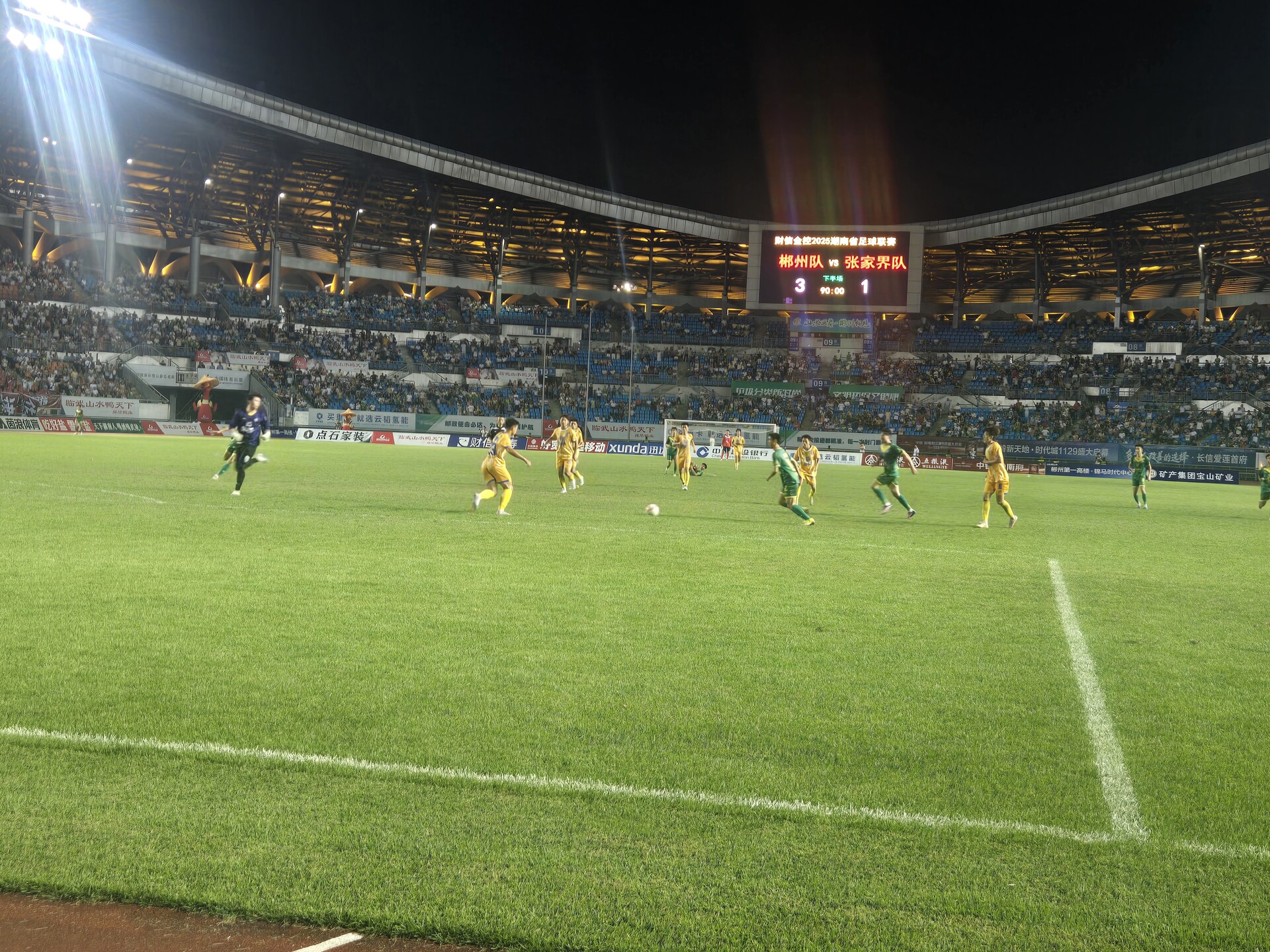 赛况方面,上半场比赛郴州队与张家界队以0∶0保持平局。下半场易边再战,郴州队调整战术,7号球员王博连进3球,上演本届湘超第一个“帽子戏法”,最终郴州队以3∶1战胜张家界队拿下主场首胜。