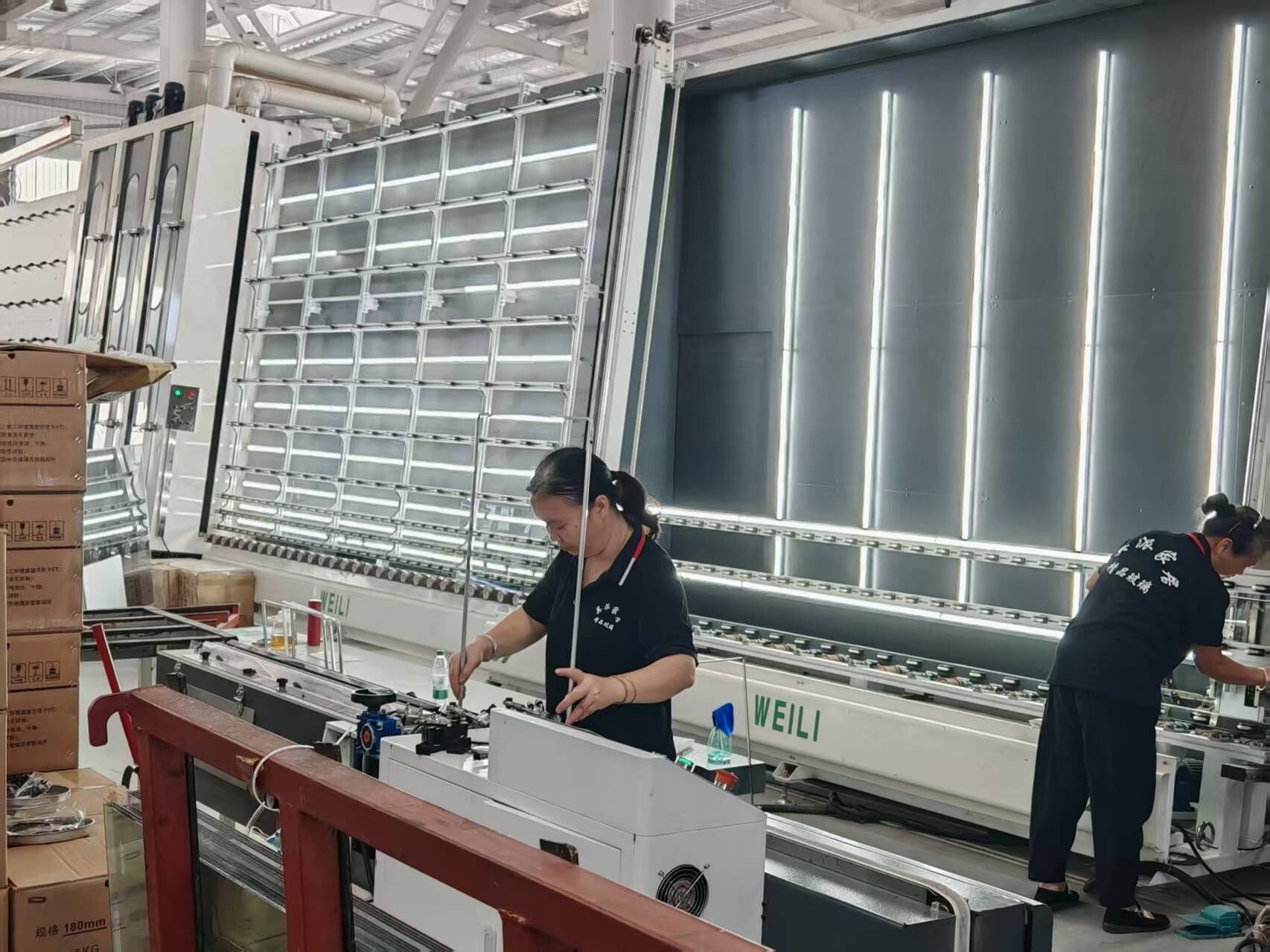 走进项目现场,车间内光线充足,机器设备高速运转,工人们正在自己的岗位上紧张有序进行钢化玻璃和门窗生产作业。该项目由桂阳英派家居有限公司投资建设,其中一期工程于去年11月启动建设,建设投资约4000万元左右,配备1条钢化玻璃生产线和4条门窗生产线。经过近一年的建设,项目一期已如期建成并进入投产阶段。