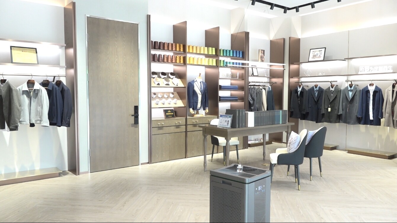 顾客李衍生说:“就是我来到这个所罗定制这个店里以后,就通过这个服务员的介绍,我试穿了一下,觉得就是穿起来很合身很舒服,而且这个面料质量也是很好。作为我个人来说,我很喜欢。”