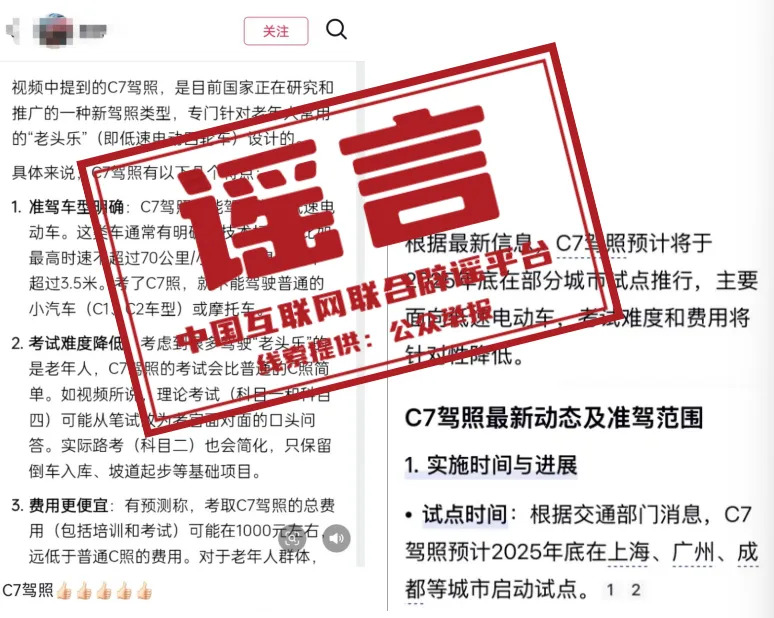 上海等地试点“老头乐”C7驾照?——今日辟谣(2025年11月24日)