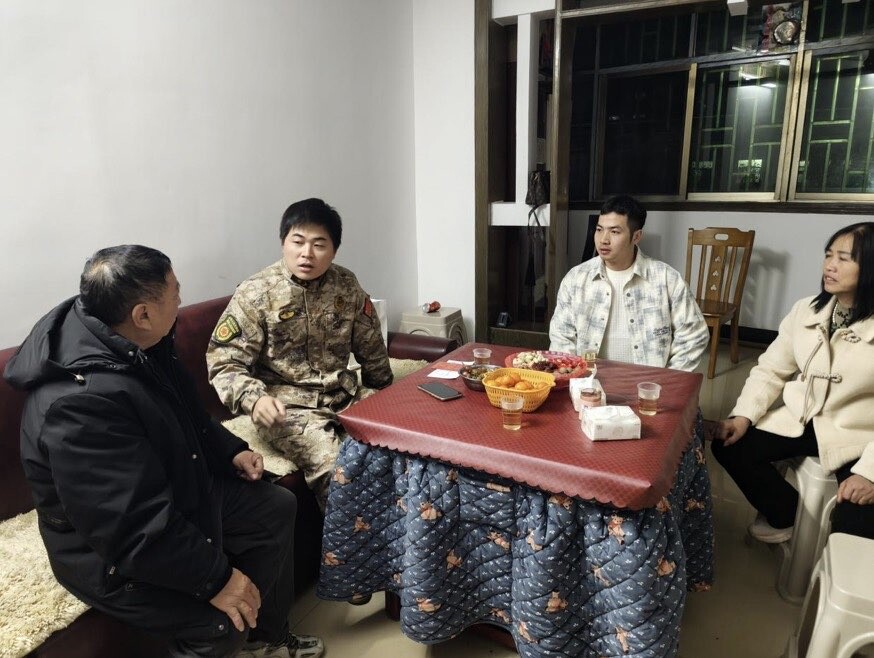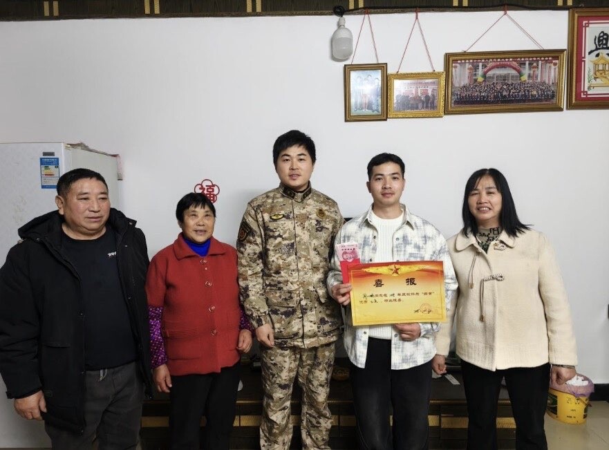 新桂阳2月14日讯(通讯员 彭昭军 夏峰 )近日,在海警某部队服役的现役军人周小鹏返乡探亲首日,白水瑶族乡人武部联合退役军人服务站的“报喜团”当晚便携带“四有”优秀士兵喜报及慰问来到位于桂阳大市场周小鹏家中,第一时间将这份军旅荣誉送到其家人手中,切实彰显对现役军人的尊崇与关怀,让军人荣誉落地生根、暖入人心。