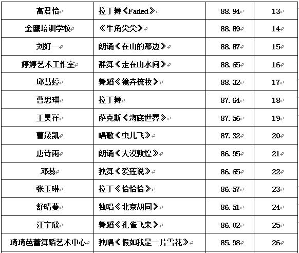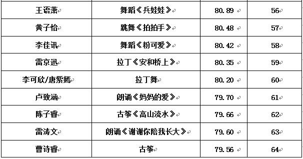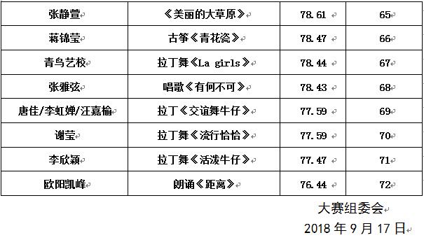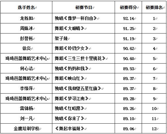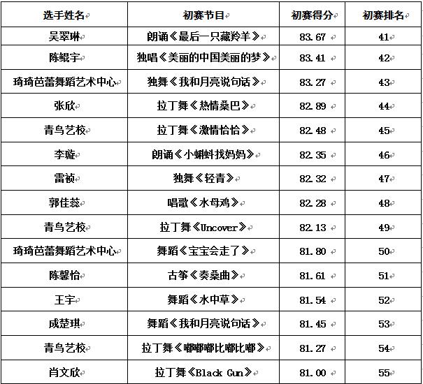 二、晋级赛选手名单表(按初赛成绩排名顺序)