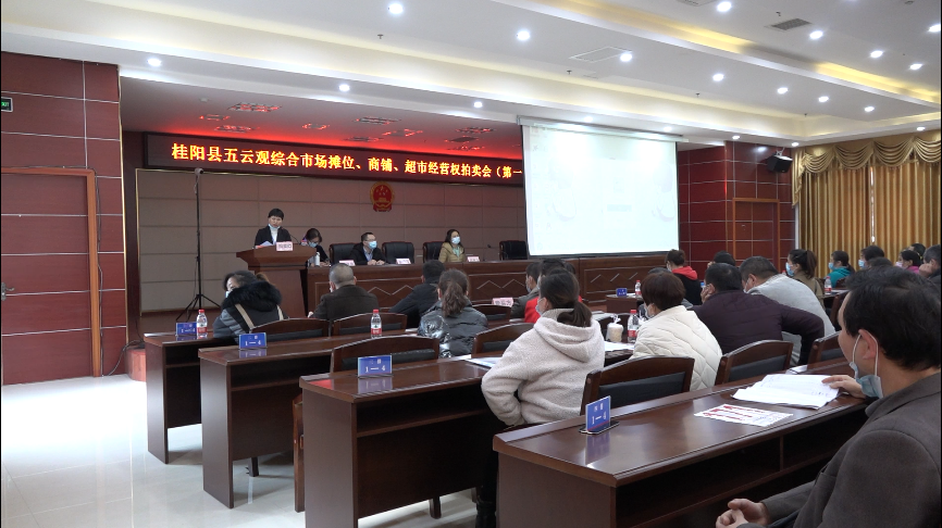 新桂阳11月29日讯(记者 谭明艳)连日来,五云观综合市场摊位、商铺、超市经营权拍卖会在县司法局举行。
