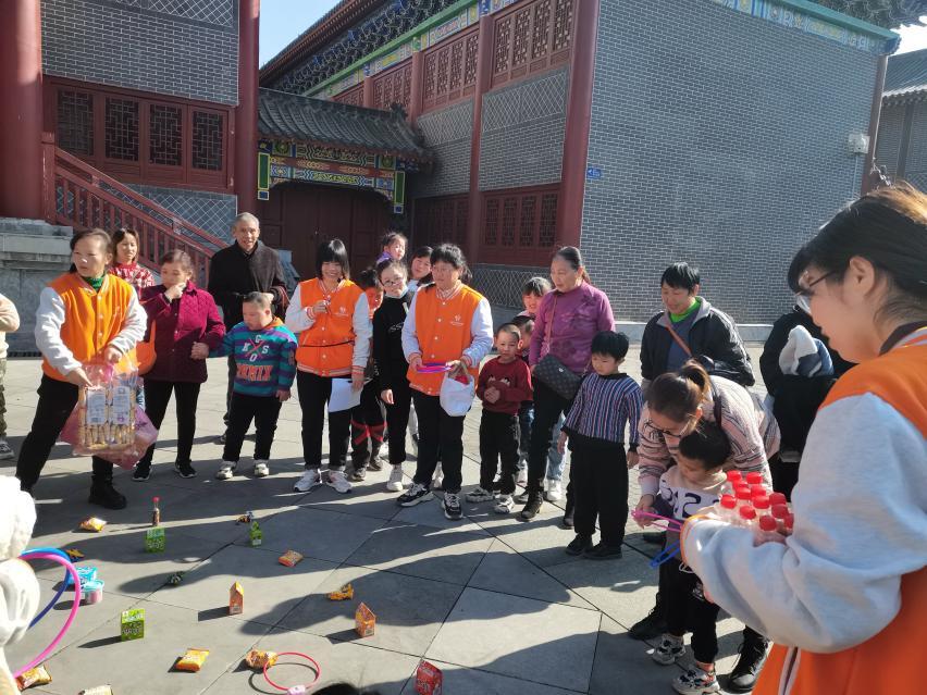 ▲贝康儿童康复中心师生开展食物套圈游戏