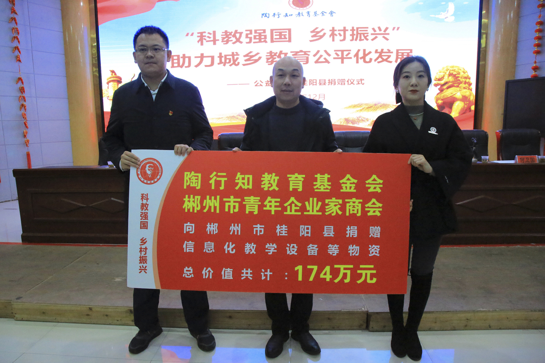 活动中,陶行知教育基金会、郴州市青年企业家商会现场向我县36所学校共计捐赠价值174万元的信息化设备,包括一间智能教室及一些教学教具。