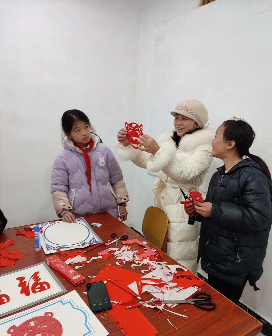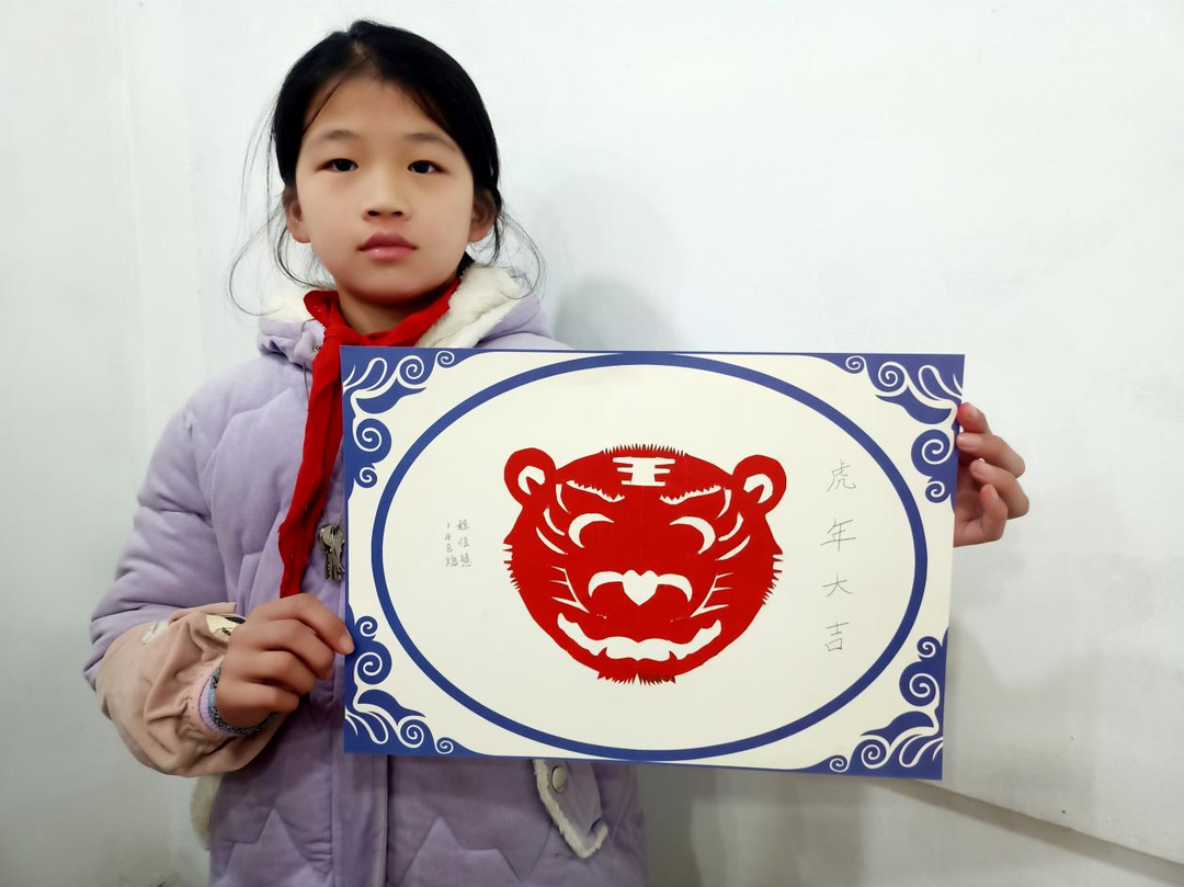 桥市乡政府干部、市级非遗传承人黎艳青亲自为学生们讲解剪纸文化的技艺,并让他们亲身体验剪纸艺术的魅力。黎老师给学生们讲解了“春节”的来历以及世界各地迎新年的风俗趣事和礼仪,言简意赅的介绍了剪纸艺术的精髓。例如剪纸艺术的起源,剪纸所需的工具,剪纸艺术的特点,剪纸的操作方法等,并向孩子们展示了一些优秀剪纸案例。讲解结束后,黎老师指导同学们动手剪“虎”迎新年。同学们学得很专注,各自剪完了可爱的老虎,看着自己亲手完成的作品,每个孩子都露出了天真的笑容。