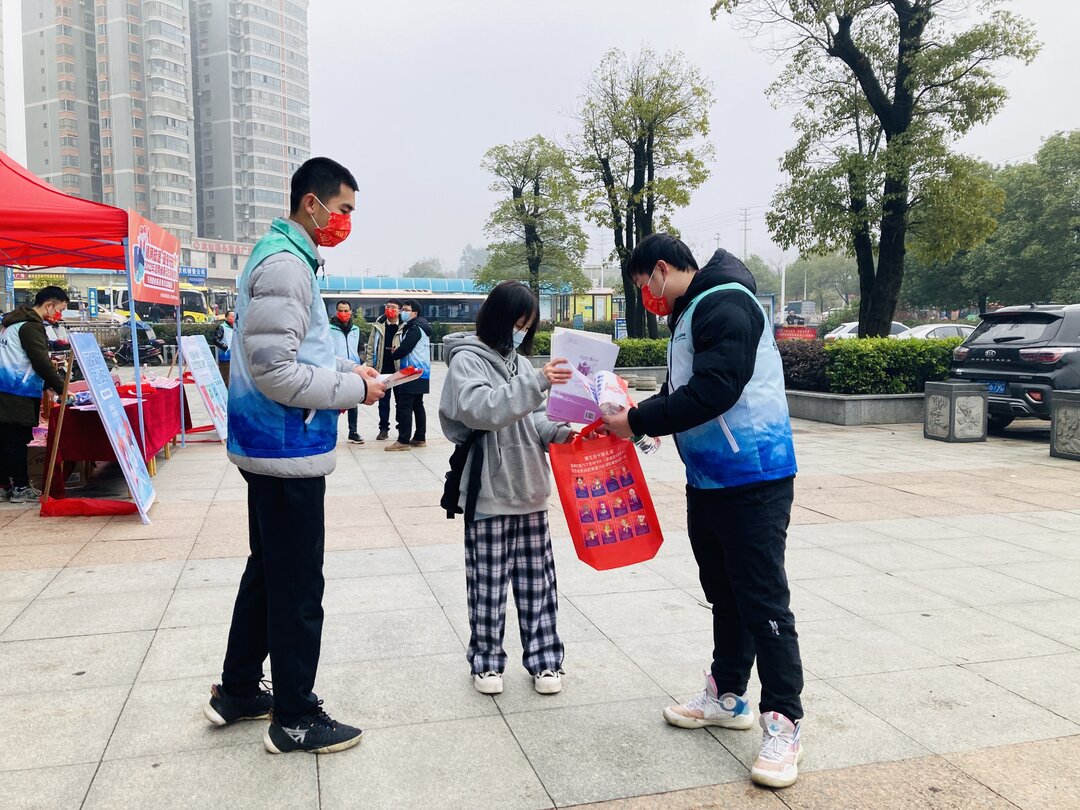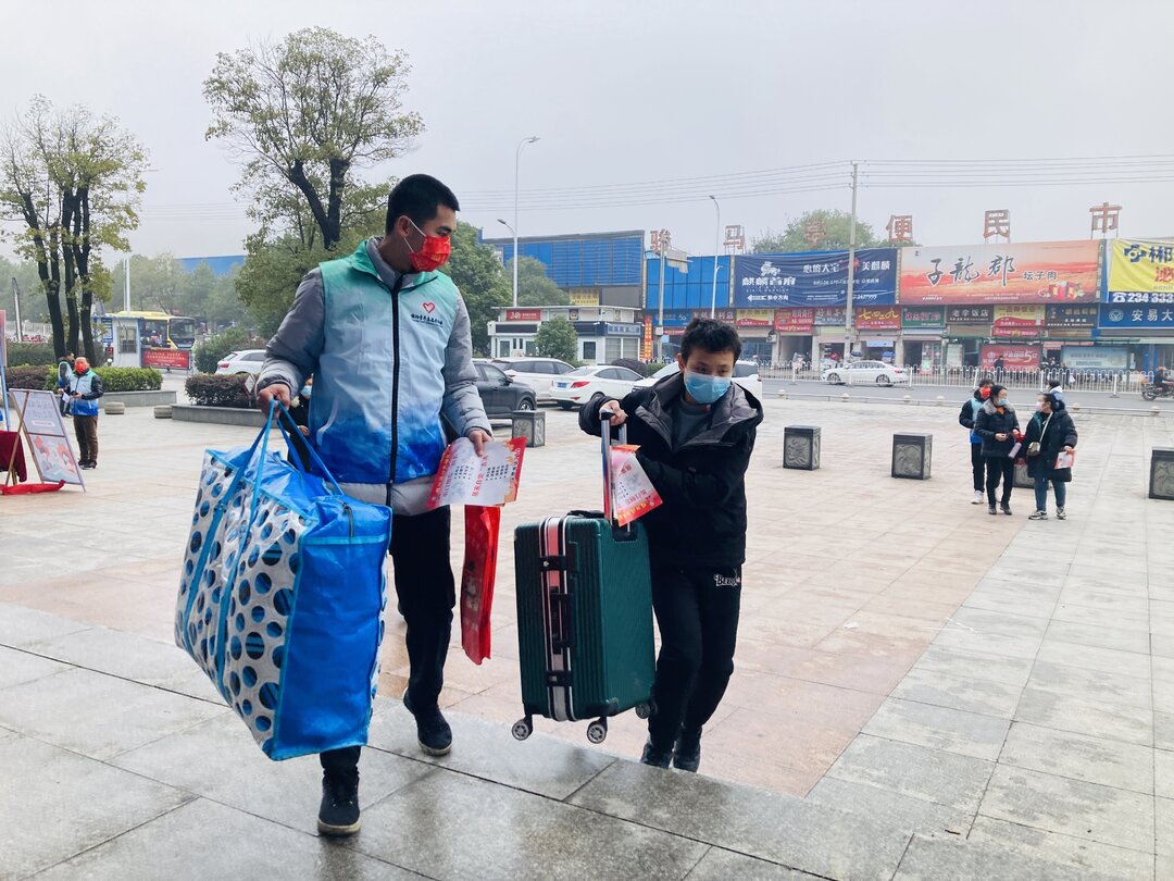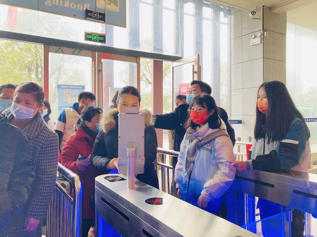 志愿者们引导乘客春运期间提高安全出行意识,做好疫情防控准备,营造了一个良好的春运出行氛围。