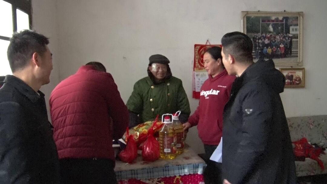 新桂阳1月30日讯(记者 谢新阳)1月30日,浩塘镇鲤鱼村青年志愿者慰问村里高龄老人,为他们带去大米、食用油、猪肉等慰问品,并送去志愿者们的关心和祝福。