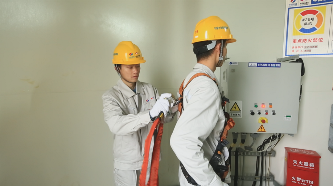 下午一点,在中国电建新能源集团莲塘光明风电场主控室内,值守人员发现机组异常,需要现场检修,立即下发指令通知运检员。运检员夏一荣和蔡高翔整理好装备后,驱车赶往风机组。