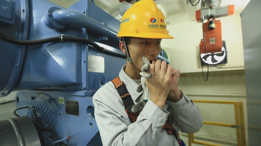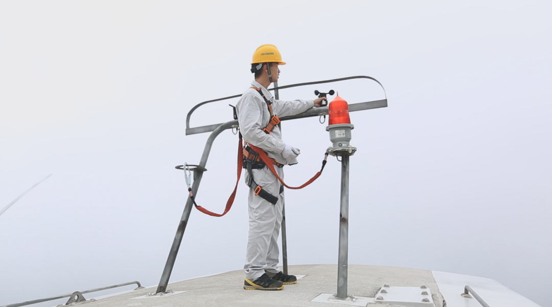 登上塔顶,高空呼啸的寒风又是另一个考验,在风中,风电机塔不断晃动,夏一荣系上安全绳走出舱门,对舱外设备进行检查,冰冷的寒风将他冻得瑟瑟发抖。
