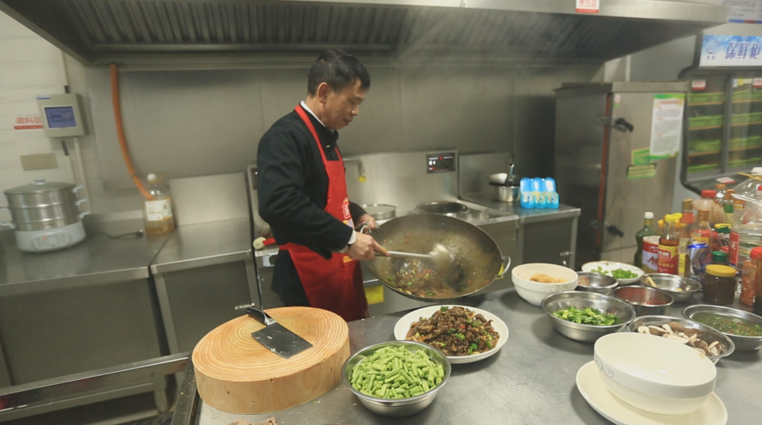 厨房里,厨师正在为大家准备年夜饭。一顿简单的年夜饭,把这些来自五湖四海的“追风人”团聚在一起。不少人拿起手机视频连线,和家人分享在风电场的团圆时刻。万家灯火欢聚一堂的背后,正是这群“追风人”默默守护。
