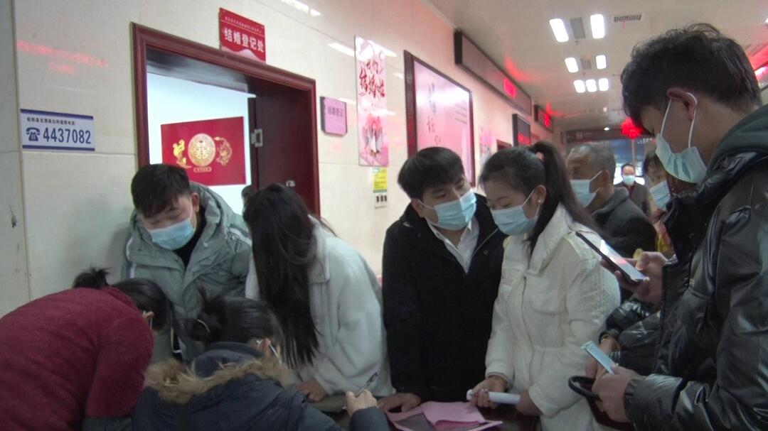 为迎接情人节领证高峰,县民政局增加了工作人员,并利用分时段预约控制人数、避免扎堆。当天,共有112对新人进行了婚姻登记领证。