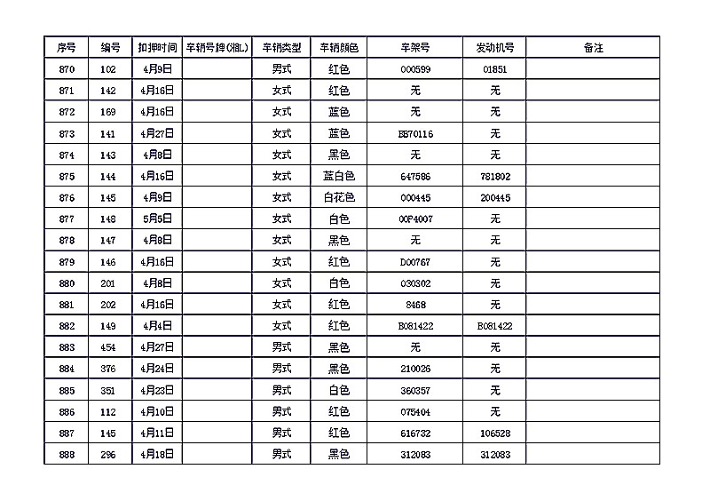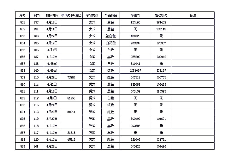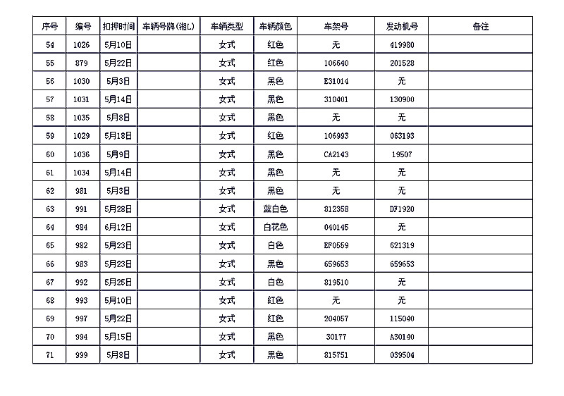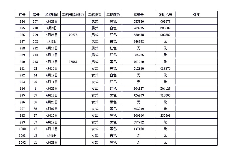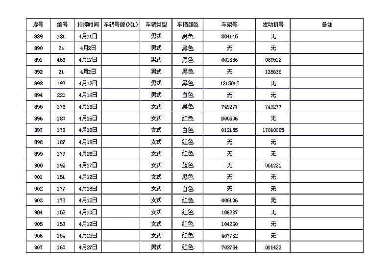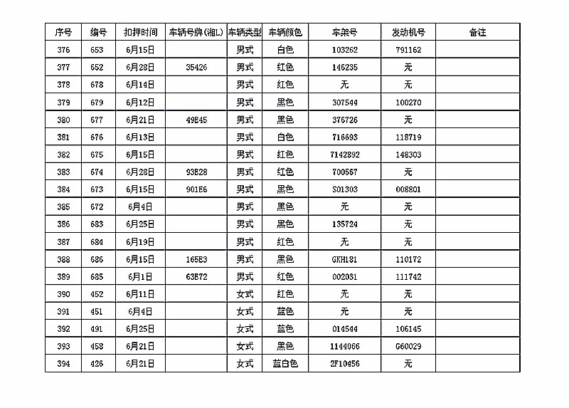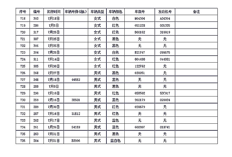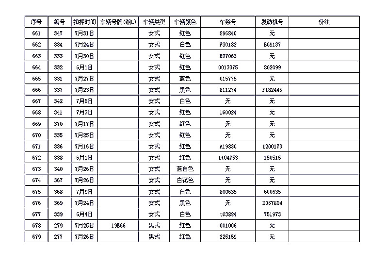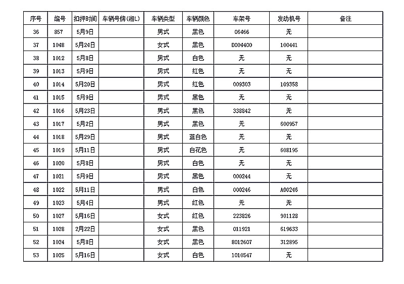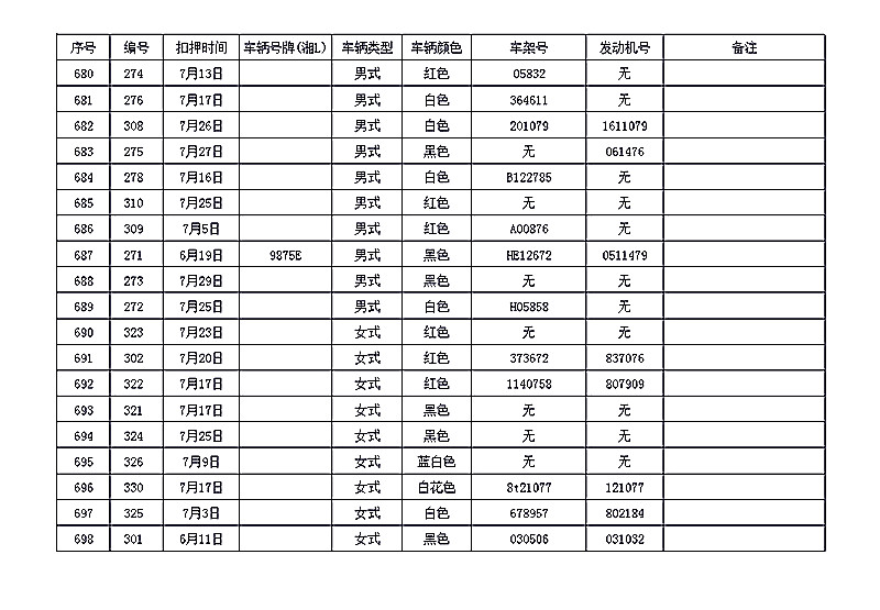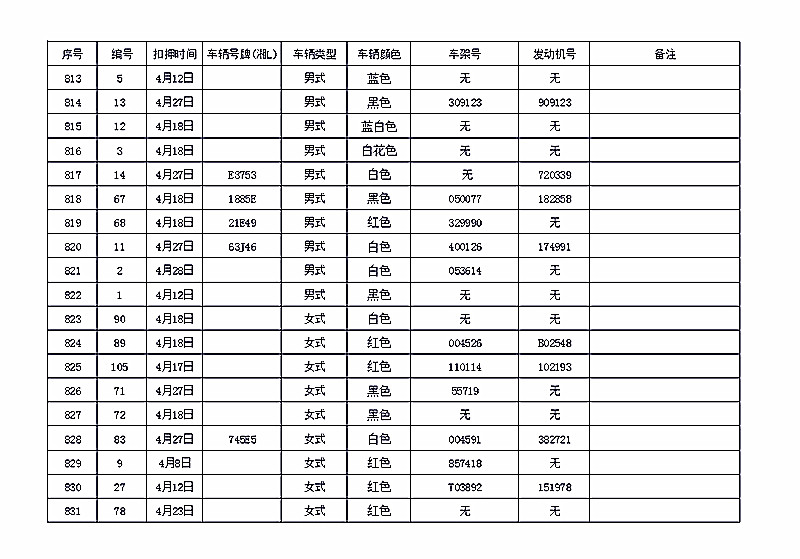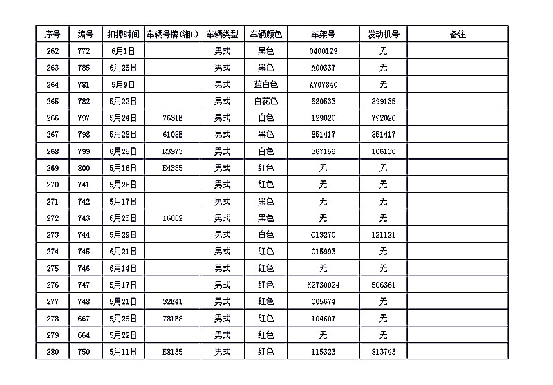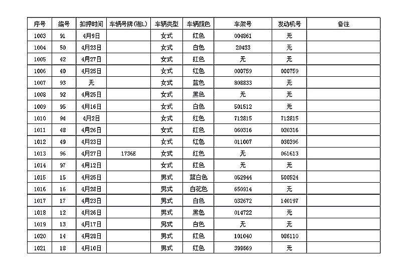 桂阳县公安局交警大队在交通执法中依法查扣了一批违法、违章车辆(详细资料见附表),现将这些车辆予以公告。请被公告车辆的车主或车辆所有人自公告之日起三个月内持身份证、行驶证等有效证件到桂阳县公安局交警大队进行处理,逾期不办理的,公安机关交通管理部门将根据《中华人民共和国道路交通安全法》和《机动车强制报废标准规定》的相关规定予以处置。