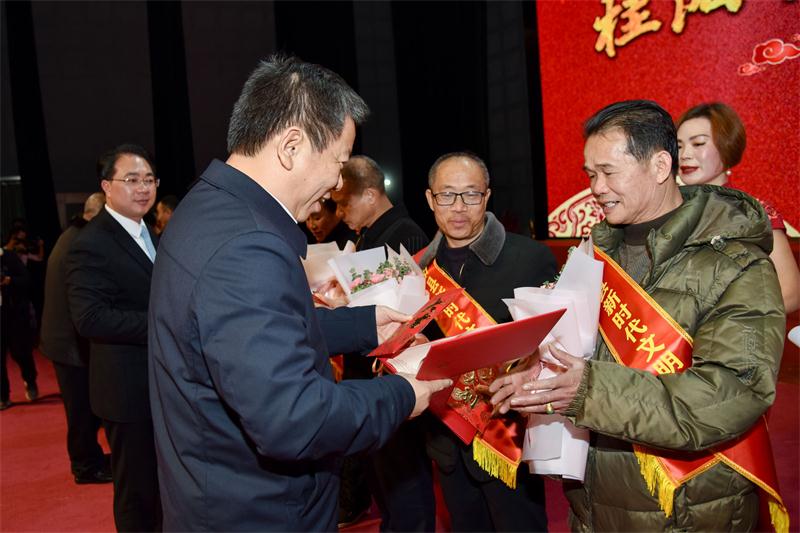 晚会现场还表彰了一批新时代文明实践标兵,“中国好人”、在外知名人士代表通过VCR向家乡人民拜年。