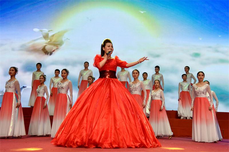 县副处以上领导干部、老领导、县直各系统单位及乡镇(街道)负责人和市民群众通过“现场+直播”方式观看了晚会。