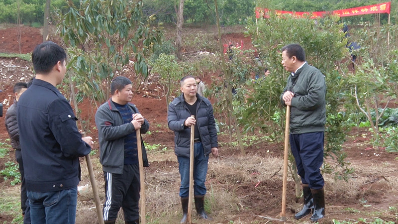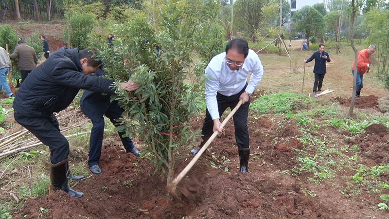 当天,共种植红枫、红叶石楠、枇杷树、杨梅树、梨树等苗木20余亩1500余株。