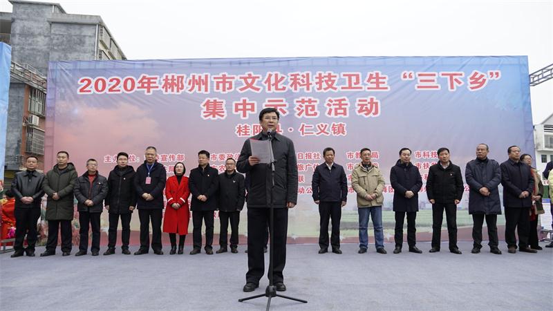 新桂阳1月20日讯(记者 欧阳桂)今天上午,郴州市2020年文化科技卫生“三下乡”集中示范活动在我县仁义镇启动。市委副书记、市委宣传部部长邹文辉出席并宣布活动启动。县委书记彭生智参加启动仪式。