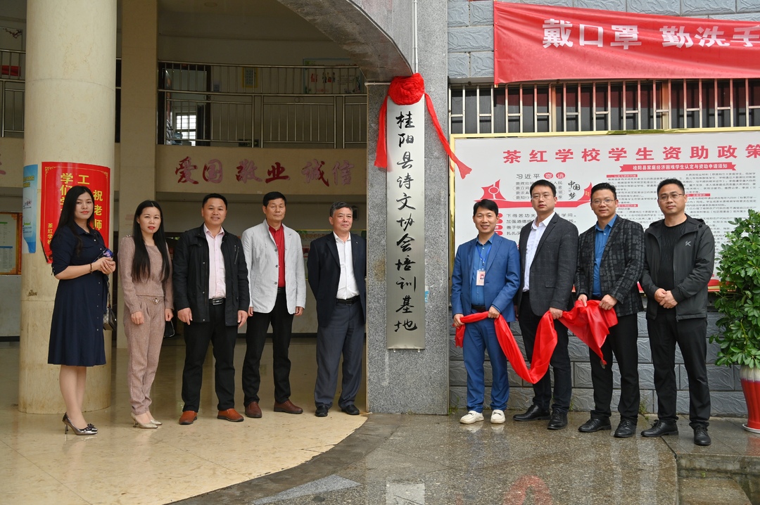 新桂阳5月12日讯(记者 李维坤 通讯员 欧阳芳)让校园充满诗意,让教室诗韵留香。5月12日,县诗文协会一行到县茶红学校开展“诗文进校园”活动。为了鼓励学生们学好诗词,做好中华传统文化的践行者和传播者,县诗文协会在茶红学校挂牌成立了“诗文培训基地”;并赠送了内容丰富、版面精美的诗词书籍。