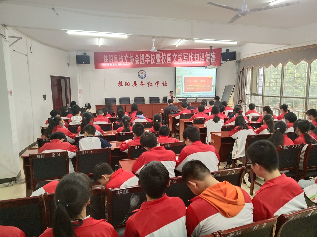 活动现场,县诗文协会副会长李佑明作专题讲座,他通过一些同学们较熟悉的古诗,引导他们领略古诗之美,将诗的韵律、节奏、讲解得十分简单透彻,传统诗词的意蕴贯穿其中,让人意味无穷。在场的同学们听得津津有味,并纷纷表示,今天收获满满,既感受到了古诗词的艺术魅力与内涵,又学习了许多新的知识,对以后学习诗词方面的知识有很大的帮助。随后,县诗文协会篮球队和县茶红学校进行了篮球友谊赛。