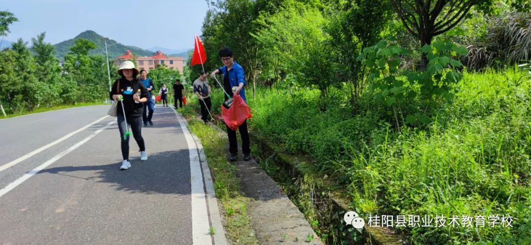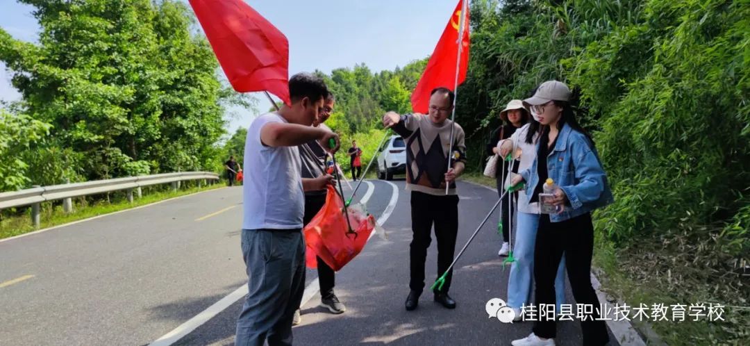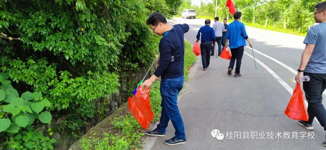 为给乡村创建洁净、文明、规范、美丽的绿色环境,5月17日下午,桂阳职校党总支部全体党员教师在党总支书记欧阳军、校长欧阳新雄的带领下,来到湖南郴州西河国家湿地公园乡村振兴示范带桂阳段,开展“垃圾分类新时尚,文明实践我先行”主题党日实践活动,以实际行动践行党员先锋模范作用。
