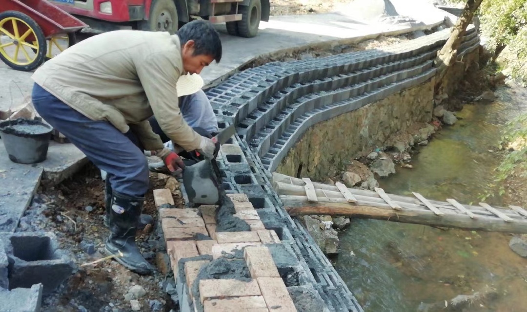 来到洋市镇平堂村平堂河附近,只见河水清澈、流水潺潺,河水两岸的烟叶青翠饱满、长势喜人。施工人员正在将生态砖吊装至河堤上,生态砖将用于加固边坡,同时为绿植提供栖身之地。此前,由于流域内水土流失严重,泥沙淤堵河道,平堂河常年杂草丛生,环境较差。