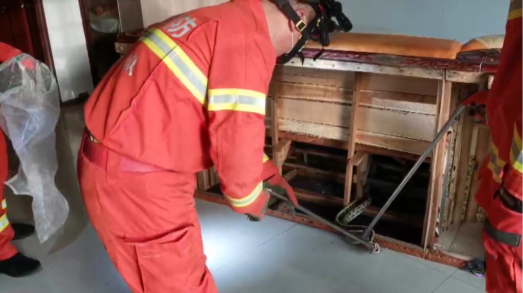新桂阳5月25日讯( 记者 廖诗卉 黄磊 通讯员 贺云丽 )近日,县消防救援大队接到报警称,我县蔡伦北路一居民家中发现一条大蛇。接警后,消防队员迅速到达现场进行处置。