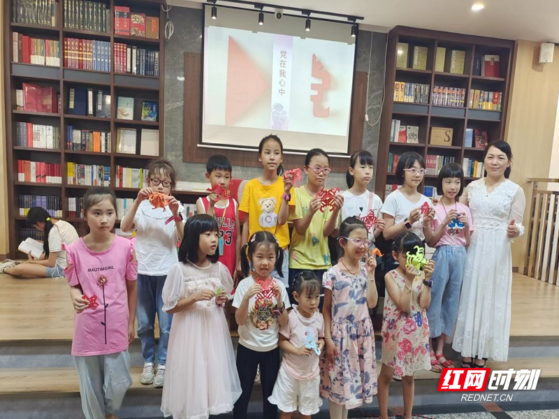 7月1日,在桂阳县新华书店开展“剪纸庆‘七一’ 非遗传承跟党走”亲子活动。