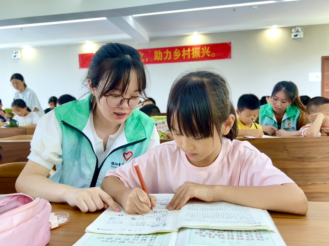 新桂阳7月18日讯(记者 廖诗卉 黄磊)暑期来临,共青团桂阳县委组织全县22个乡镇(街道)返乡大学生开展“小手拉大手,结伴共成长”志愿服务活动,返乡大学生与留守儿童结“对子”,共度丰富多彩的暑期生活。