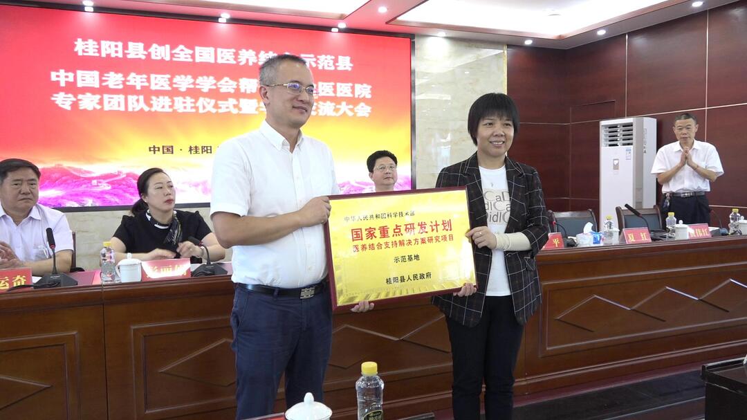 活动听取了桂阳县中医医院工作情况汇报;授予桂阳县人民政府“国家重点研发计划医养结合支持解决方案研究项目示范基地”牌匾;授予桂阳县中医医院“国家重点研发计划医养结合支持解决方案研究项目示范单位”“中国老年保健医学研究会理事单位”“中国老年医学学会理事单位”牌匾。