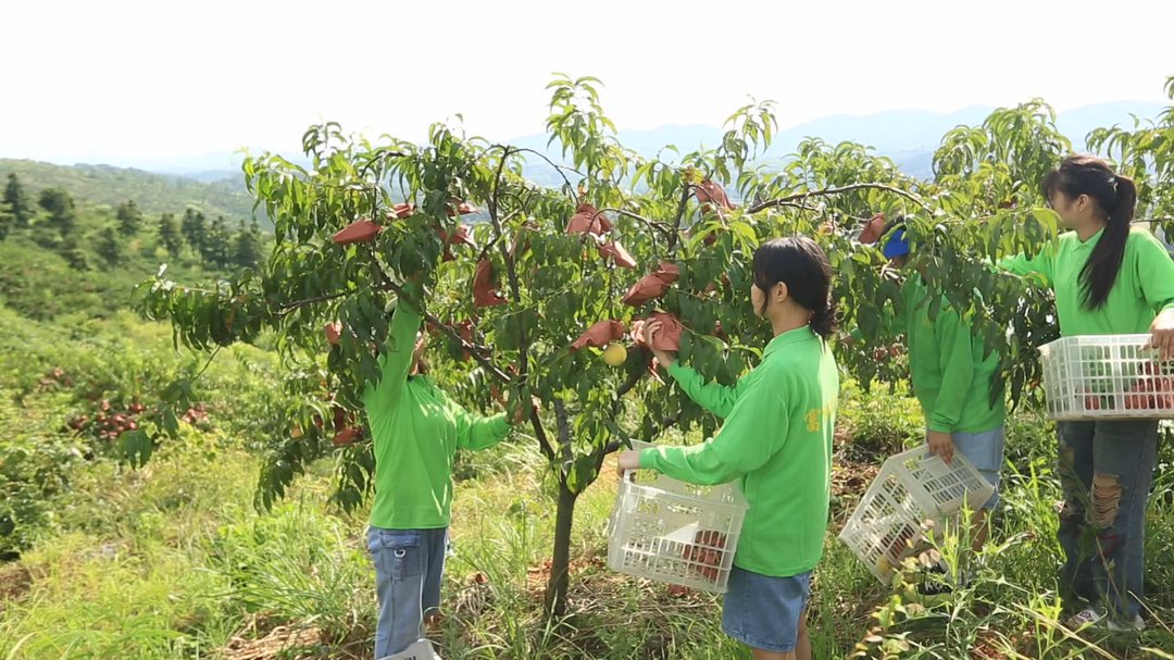 几年前,这座桃山还是一片荒地。2013年,在上海创业的欧阳平返回家乡,引进优质品种,开荒种起了黄桃。独特的地理位置、充足的日照、以及较大的昼夜温差,让这里出产的黄桃口感极佳。基地与粤港澳大湾区企业签订直销协议,“订单式”种植的黄桃从小山村走出,直销粤港澳。