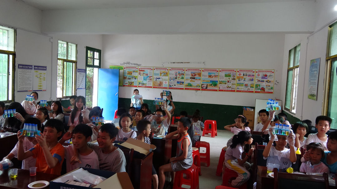 县科协的科技志愿者们精心准备了30套实验用具,为孩子们展示一些生活现象产生的过程,并将这些实验用具作为暑假礼物送给他们。