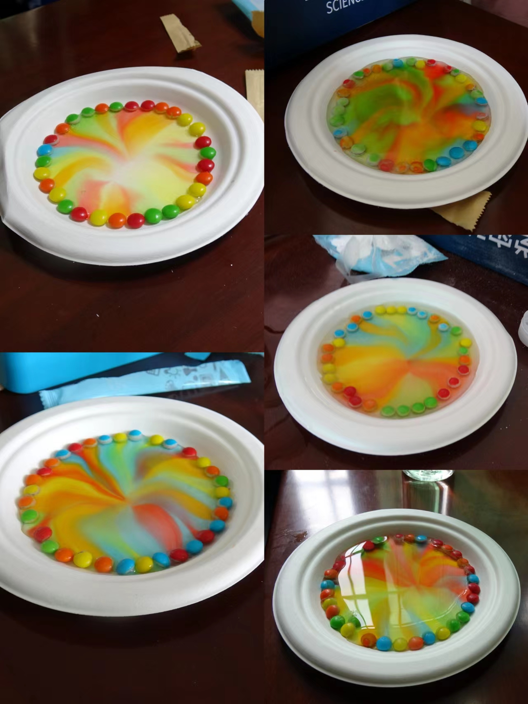 科技志愿者们带领孩子们完成了“调色大师”、“彩虹摩天轮”、“人造雪”等趣味小实验,五每一个彩缤纷的实验结果让大家非常激动,感受到了科学的乐趣。