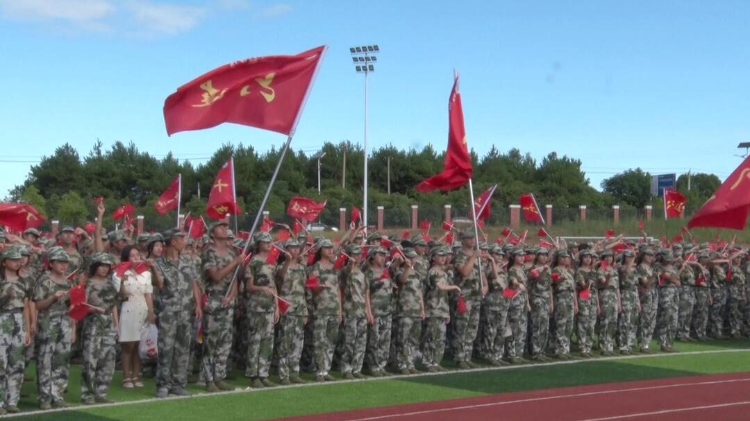 最后,高一新生军训闭营仪式在全体大合唱《我爱你中国》的歌声中顺利闭幕。
