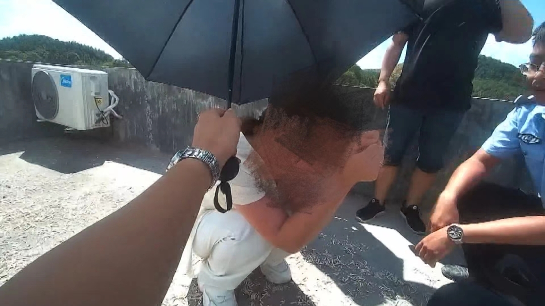 交谈过程中,一名民警一步步靠近轻生女子,为她送水、撑伞。女子喝完水后拿起放在身边的手机,趁此机会,民警一个健步上前,一把抱住女子腰部,成功将女子从护栏上“夺”了回来。