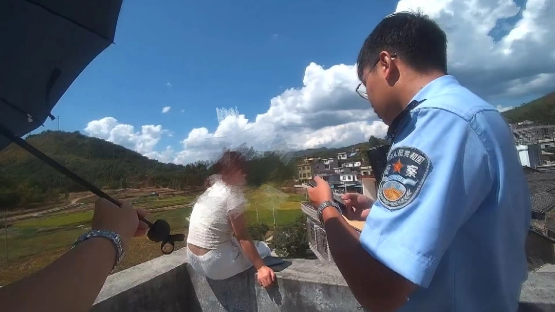 新桂阳10月9日讯(记者 廖诗卉 黄磊)近日,县公安局塘市派出所接群众报警称,一名女子坐在一栋三层居民楼的楼顶护栏上欲轻生。接警后,民辅警第一时间赶到现场。时至正午,群众反映轻生女子已有18个小时不吃不喝,情绪已到崩溃边缘,楼下为混凝土地面,一旦坠落后果不堪设想。