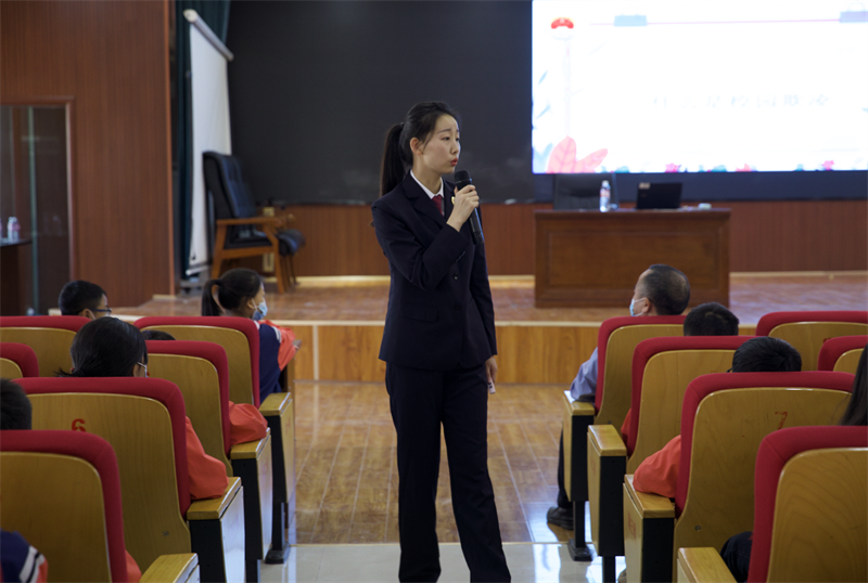 活动中,县检察院欧阳凯铃检察官根据当前社会治安和校园安全形势,围绕校园性骚扰、校园欺凌等方面,通过情景设置、典型案例分析、普法问答等形式与学生积极互动,加强学生们对违法犯罪行为的认识、引导学生们增强法治观念、提高学生们的自我保护意识。