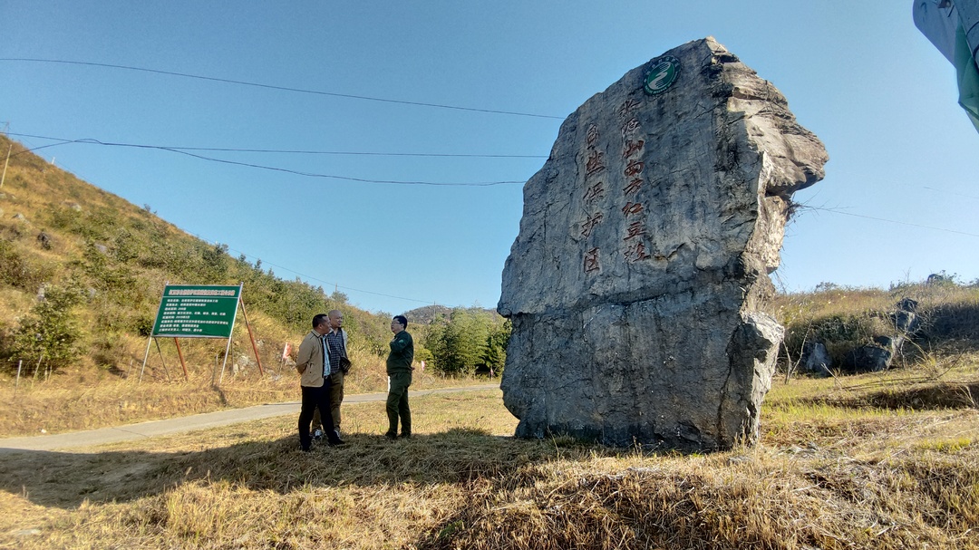 在保护区水源山片区,工作人员正在下故村的后山上为受旱情影响严重的国家一级重点保护野生植物红豆杉挂“药水”。先在树皮上钻孔、钉钉,挂上营养液,把输液管插入孔里,然后在靠近树根处把打好孔的水瓶倒立放好,不多时,一株红豆杉的渴水状态就得到了缓解。